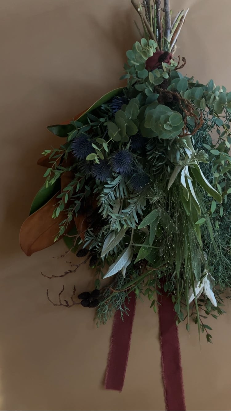 スワッグとは、花や葉などを束ねて壁に飾るインテリアのこと。