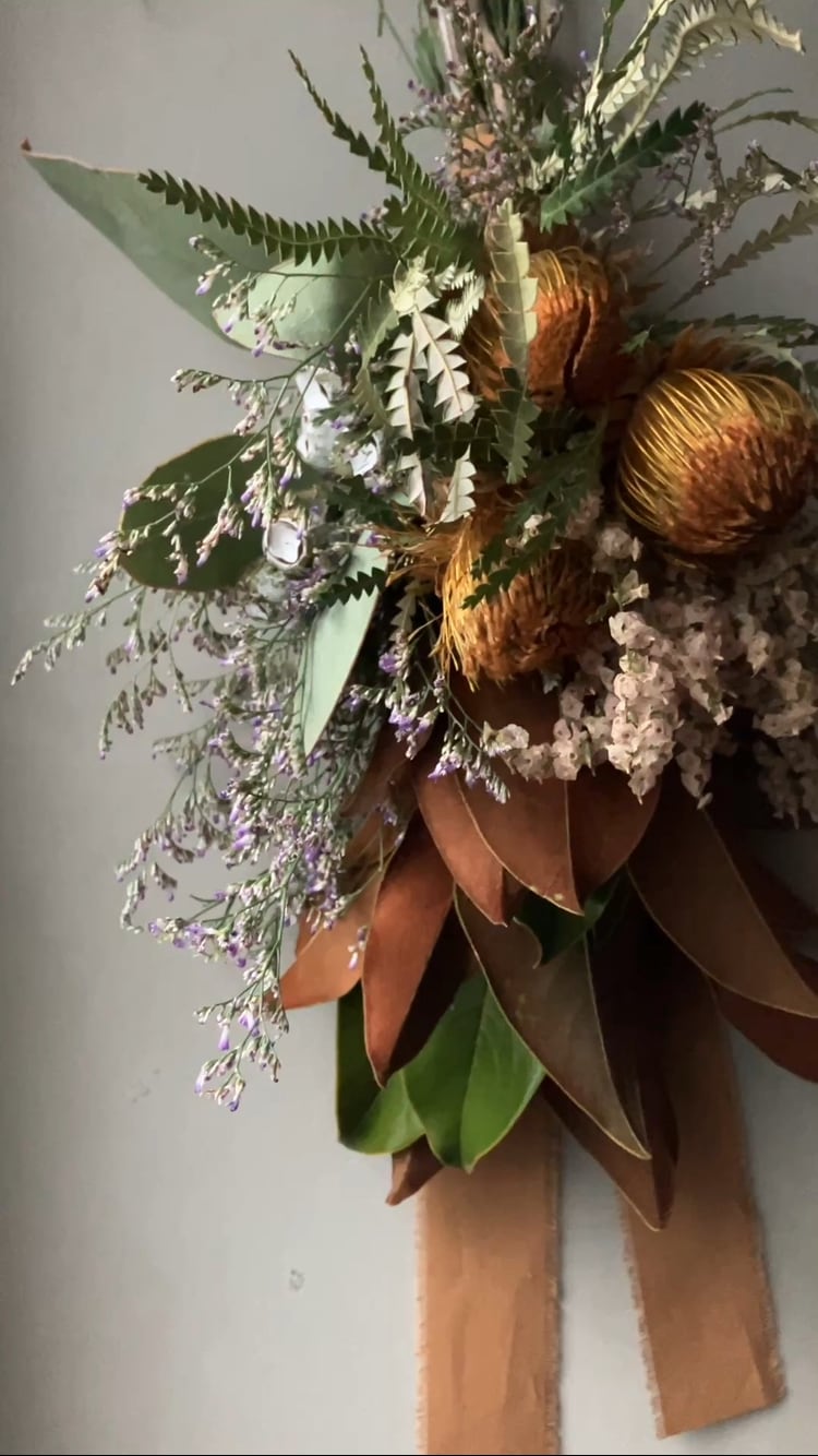 花や葉を束ねて逆さに吊るし、壁やドアに飾ることで季節を楽しむ、ヨーロッパ発祥のスタイルです。