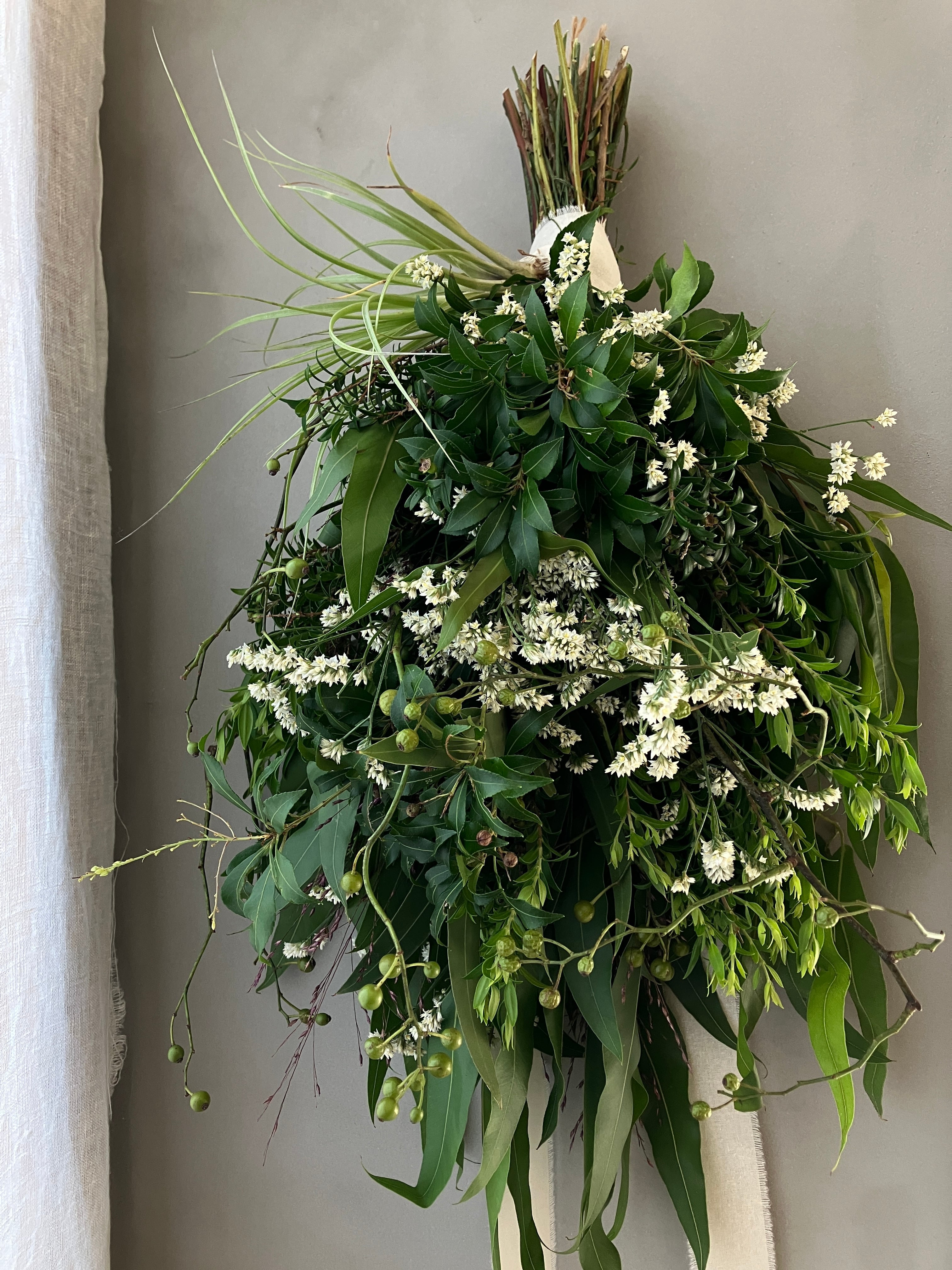 スワッグとは、花や葉などを束ねて壁に飾るインテリアのこと。