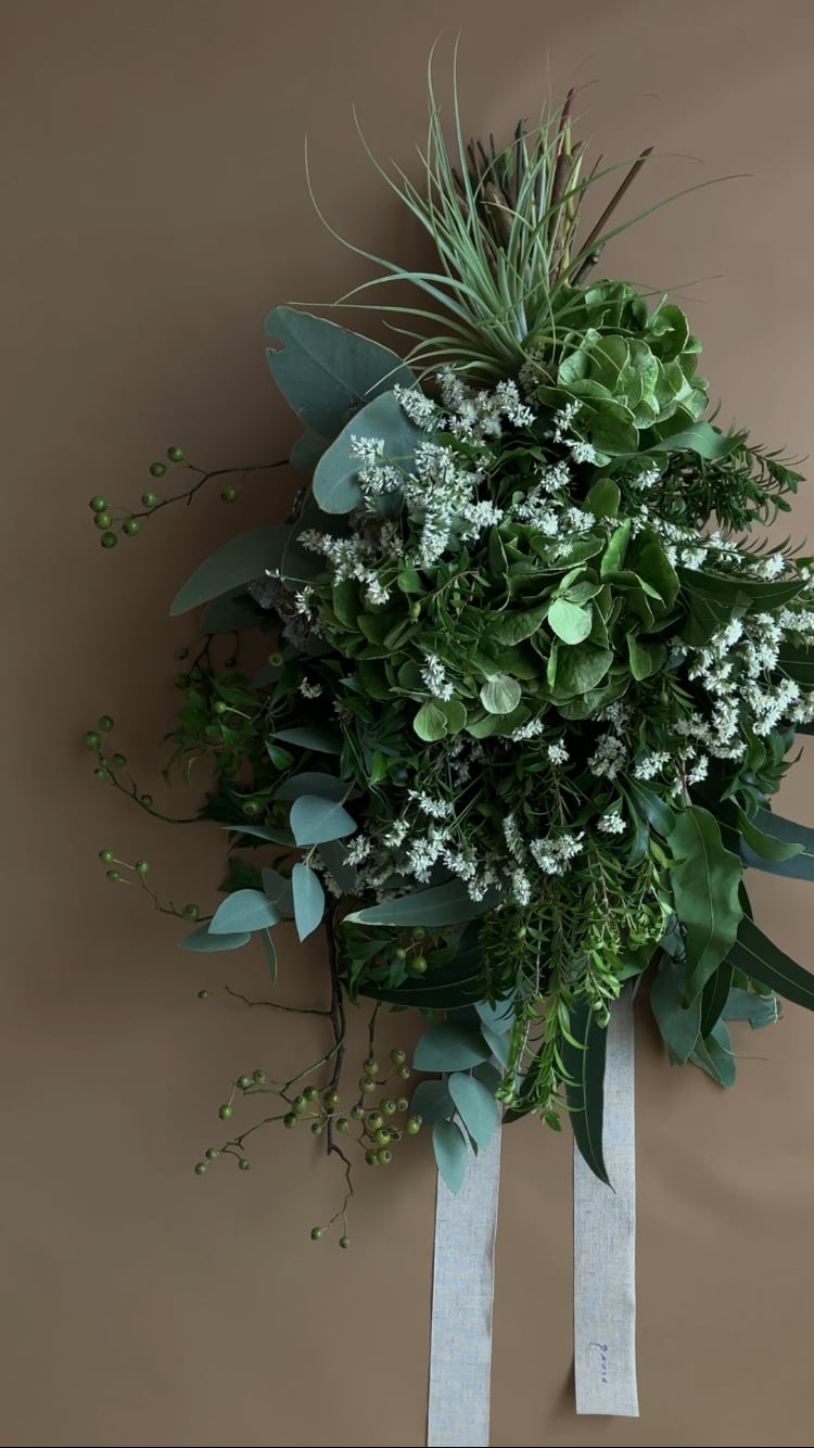 生花でお作り致しますが、時と共に変化をする花や植物を楽しんで頂けます。